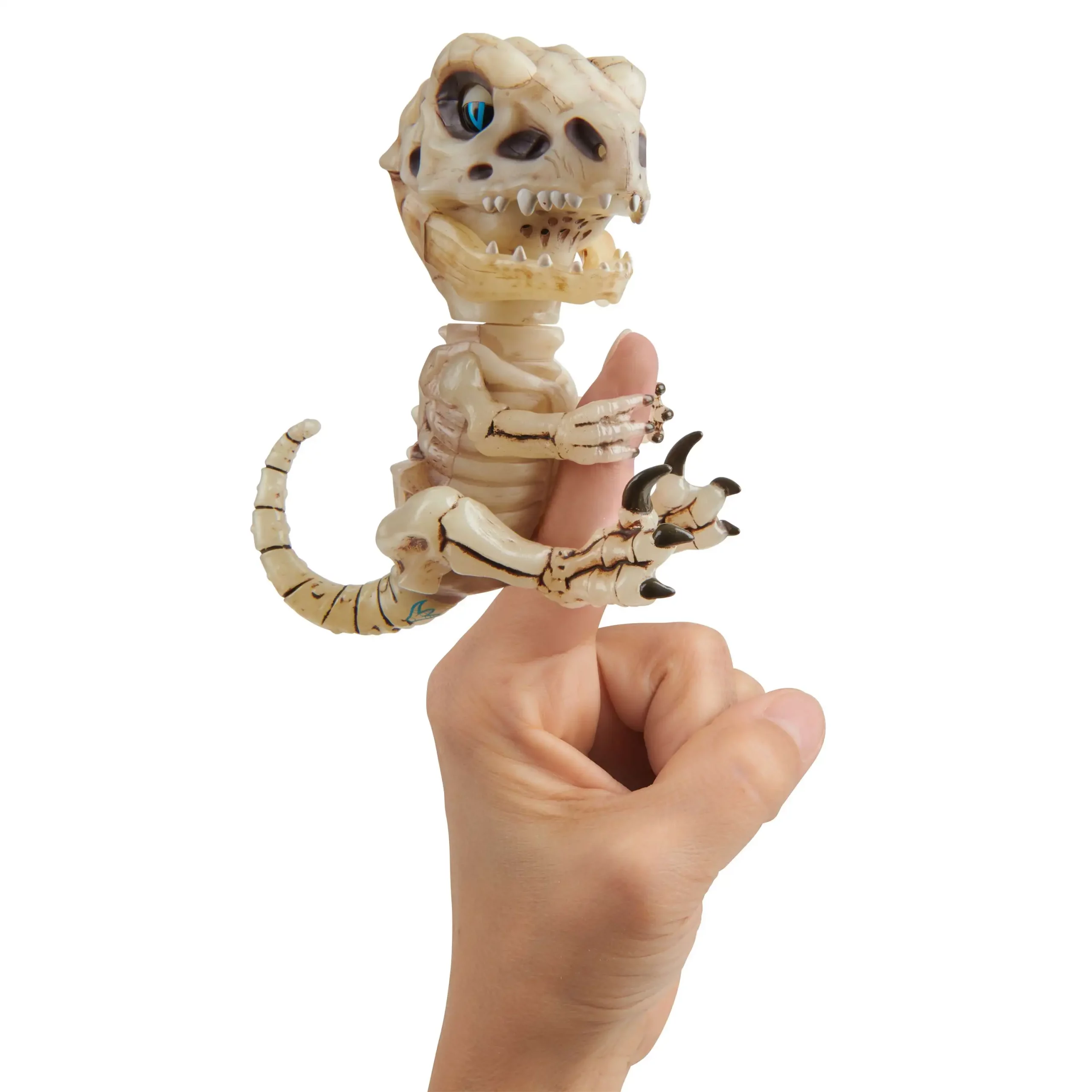 Meet the Untamed Skeleton Raptor by Fingerlings, AKA Bonehead! This creature is fierce and unpredictable, and knows friends vs. foes. In untamed mode, Gloom rattles, roars, hisses and chomps! In tame mode, he nuzzles and purrs in his jingle-jangle skeletal way. Complete with snapping jaws that look like broken bones and claws that grip, this interactive Raptor reacts to touch, motion and sound with over 40 different animations and SFX. Bonus: This bonehead glows in the dark like a zombie skeleton! Mwa-ha-ha! Wowwee Usa Untamed Skeleton Dino – Gloom.