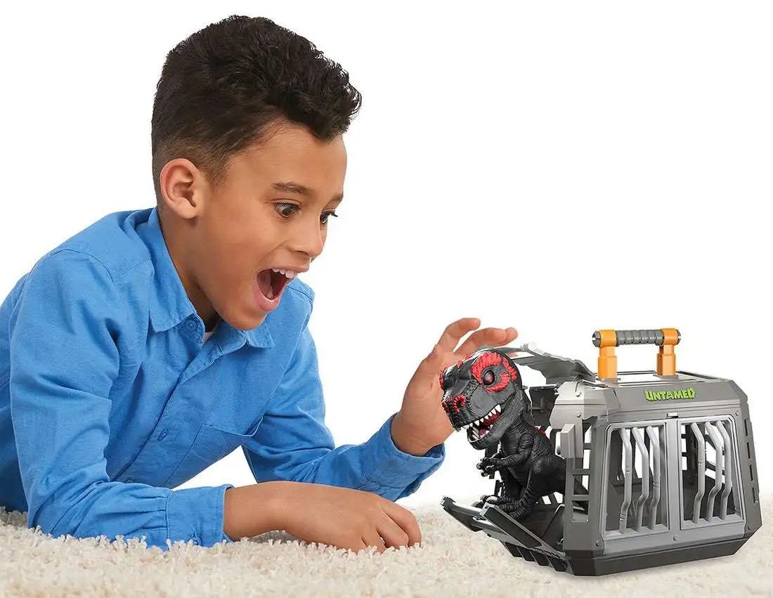 What happens when Fingerlings Untamed dinosaurs get a little tooferocious? You give them a time-out in the Jailbreak Playset! This special cage comes with Infrared, an exclusive T-Rex with eyes that glow in the dark and a fierce desire to escape. Contain him if you can! But beware: if you pull the lever, Infrared will bust out of his cage! The Jailbreak playset holds up to two Fingerlings untamed creatures. Will they be friends or foes? That depends on you. Will you tame them into friendly companions or unleash their inner beasts?