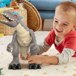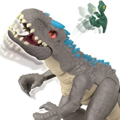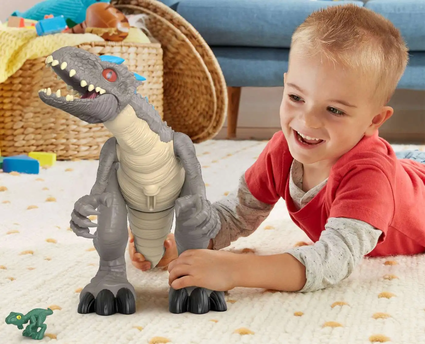 Recreate the action of the Jurassic World films, and imagine all-new stories, with this awesome Imaginext Thrashing Indominus Rex figure set from Fisher-Price. The ferocious Indominus Rex is on the loose! This fierce predator can battle even the toughest dinosaurs. When the raptor jumps on the Indominus Rexs back, kids can move the larger dinosaurs tail to watch her thrash and toss the raptor right off. Can Owen and the rest of the team get the dinosaurs under control Thats for your young dinosaur wrangler to decide! Imaginext Imagine Whats Next! (Owen figure sold separately and subject to availability.)