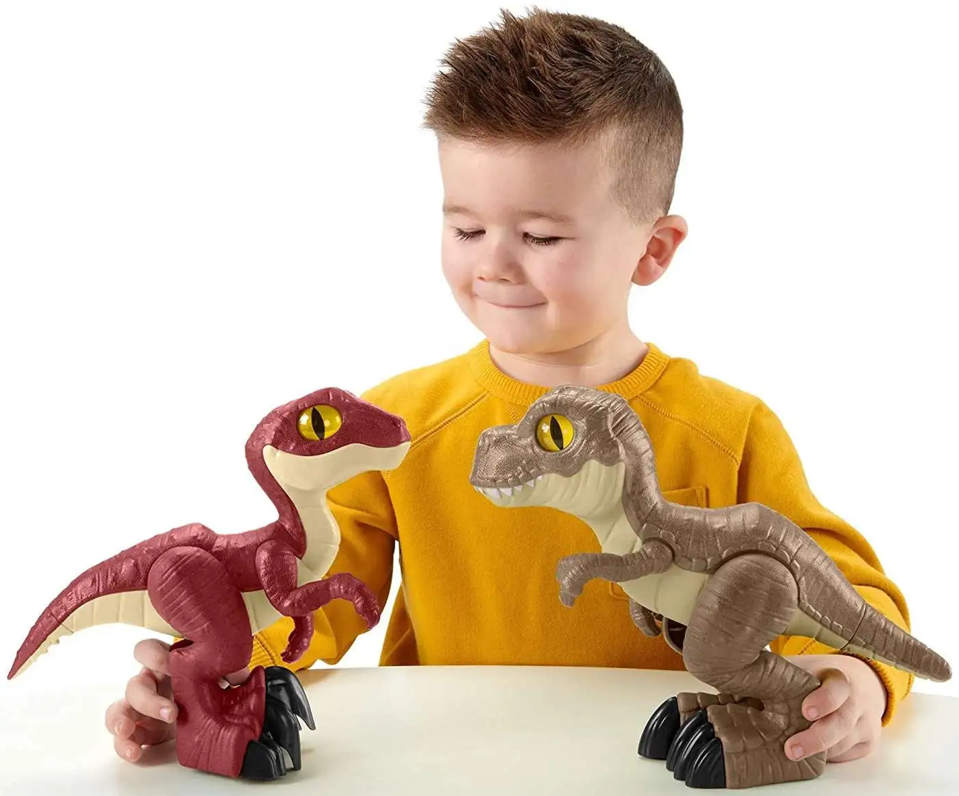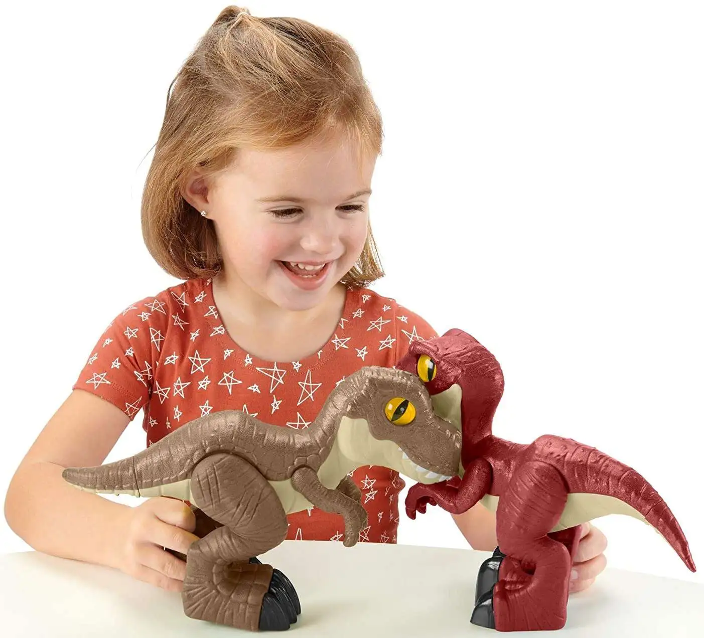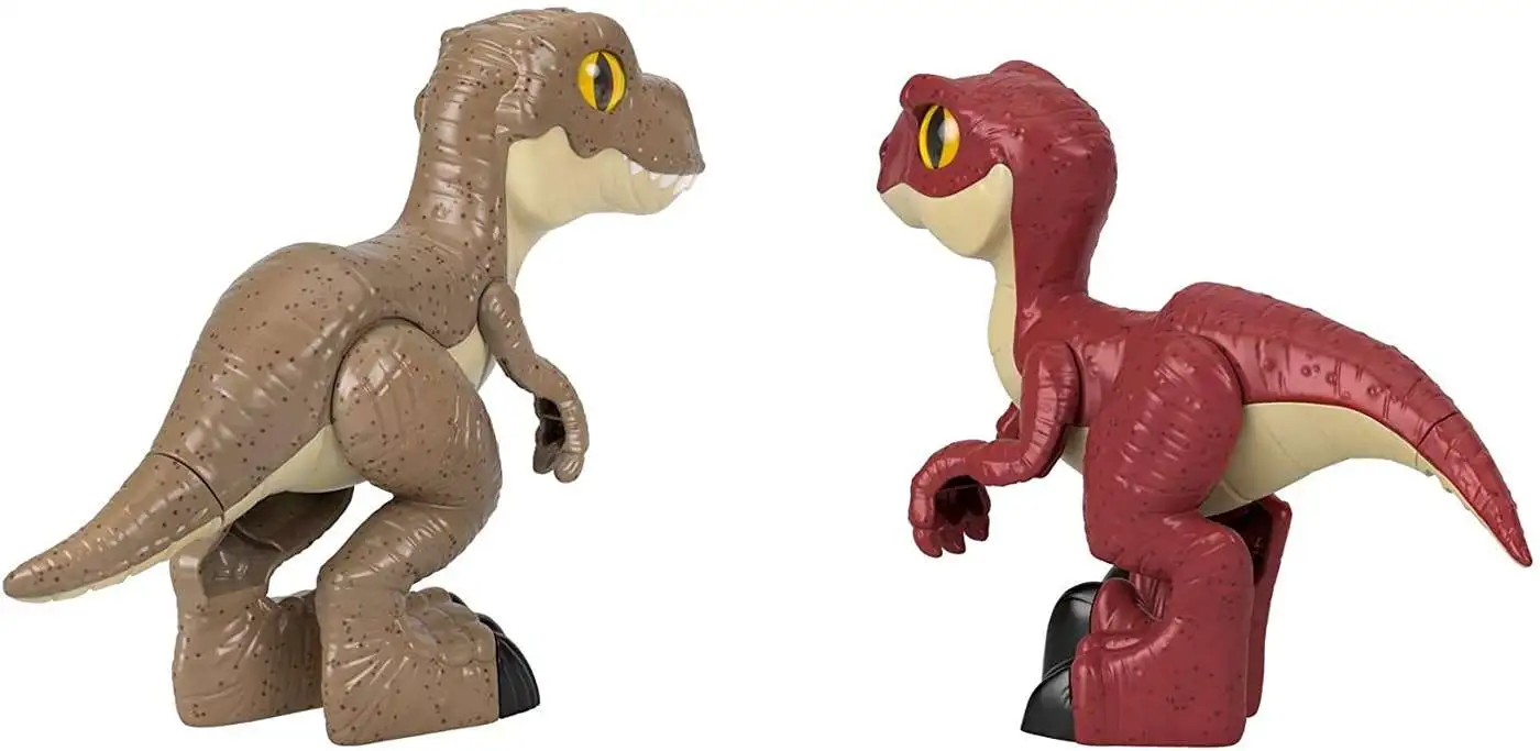 Two giant dinosaurs are about to go head to head with the Imaginext Jurassic World Dino Attack Pack from Fisher-Price! This set of two extra-large dinosaur figures features a ferocious T.rex and a wild Raptor who are ready to embark on awesome Jurassic World adventures. Each dino has moveable arms and legs so kids can create realistic action! Which dinosaur will prevail when these ferocious creatures battle it out? Thats for your little wrangler to decide! Imaginext Imagine whats next!