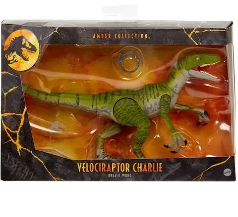 Relive the exciting big-screen action with the Jurassic World Amber Collection! This collection spans the film franchise and features highly collectible and extremely posable action figures with authentic decoration and deluxe detail. The Velociraptor Charlie dinosaur action figure is inspired by the first Jurassic World and captures not only her aggression but her intelligence traits as well. Action figure is approximately 6.5-inches and includes a stand for display plus tactical head gear for expanded play. Take home the excitement of Jurassic World with this exciting Velociraptor Charlie dinosaur action figure! Collect other action figures in the Amber Collection! Each figure sold separately, subject to availability. Colors and decorations may vary. For ages 4 and up.