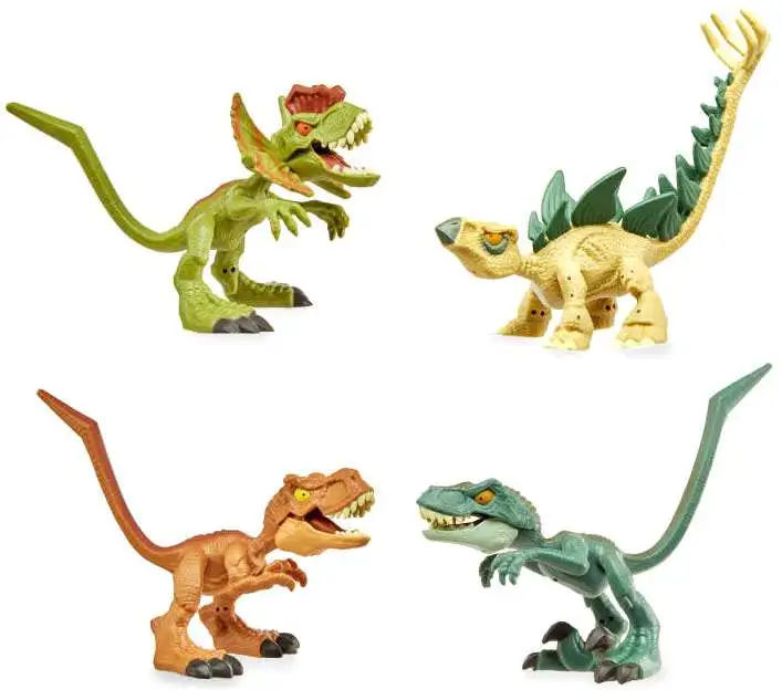 Engage in action play of epic proportions with this 4 pack of bendable dinosaurs figurines. These include 4 of the most popular dinosaur species, including a Stego, Raptor, T-Rex and Dilpho! Bend, bite and play with these great characters from Jurassic World. Perfect for Jurassic fans or dinosaur enthusiasts.