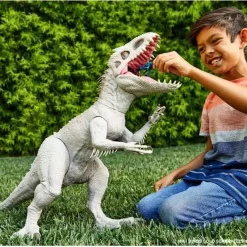Be a part of the adventure with the Super Colossal Indominus Rex inspired by the Jurassic World animated series, Camp Cretaceous! At approximately 18-in high & 3.5 ft long/45.72 x 104.14-cm, this Super Colossal Indominus Rex figure features realistic skin texture and color authentic to the series. Indominus Rex comes battle-ready with articulated arms and legs, extra-wide jaws that can open and close, and the ability to swallow 20 mini dinosaur action figures whole (sold separately). To release the figures, open the door on the belly. Take home the excitement of Jurassic World with this HUGE Indominus Rex dinosaur action figure! Makes a great gift for ages 4 years old and up especially fans of the Jurassic World, dinosaurs and action play!