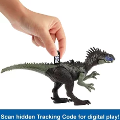 Get ready for thrills and adventure with figures inspired by Jurassic World Dominion. This Wild Roar assortment of medium sized dinosaurs not only have sound to bring roaring play to life, but also a species-specific attack action, from chomping to surprise tail attacks, activated by pressing down on the hip area. All figures feature movable joints, authentic sculpting and realistic colors and textures for fun action play and dynamic posing. Extended digital play is available by scanning their DNA tag in the improved Jurassic World Facts app. For ages 4 years old and up.