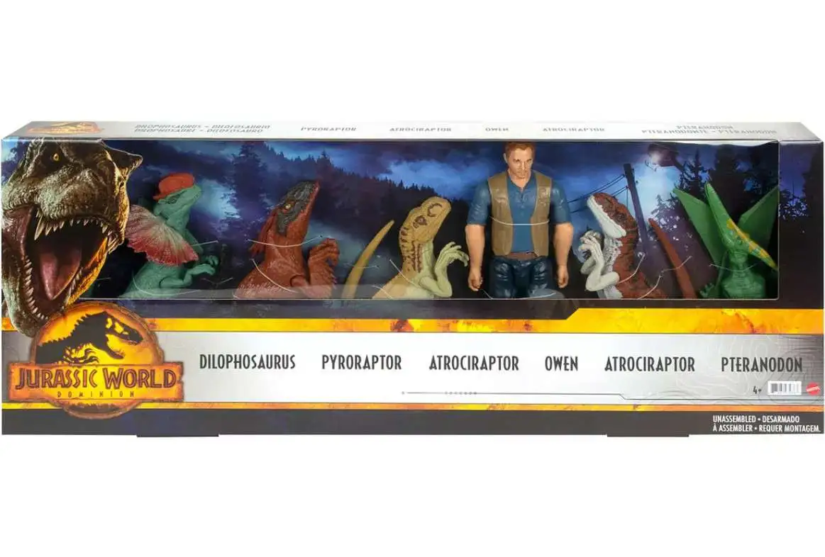 Get ready for thrilling action and adventure with Jurassic World: Dominion with these 5 large dinosaur figures, and human figure pack!