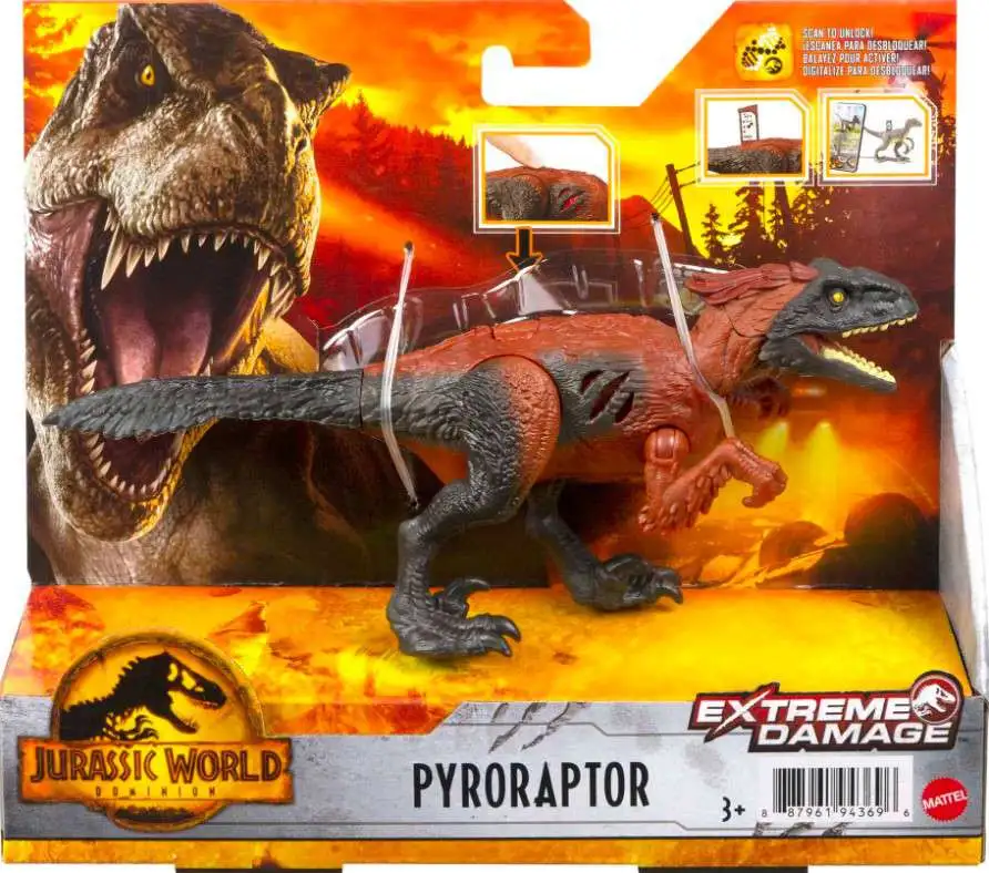 Get ready for the thrills and adventure of Jurassic World: Dominion with these Extreme Damage dinosaur figures inspired by the movie. Each action figure features extreme slash damage on BOTH SIDES! Just press the button on top to reveal the double-sided damage! These carnivore figures also have movable joints, authentic sculpting and realistic color and texture. Choose from a variety of figures, including some EXCLUSIVE dinosaurs. Bring these dinosaurs TO LIFE with extended digital play using Augmented Reality! Dare to see how REAL dinosaur play can get! Just scan the hidden DNA code with any smart device to unlock the AR experiences in the free Jurassic World Facts app. Smart device not included. Colors and decorations may vary. Each sold separately, subject to availability. For ages 3 years old and up.