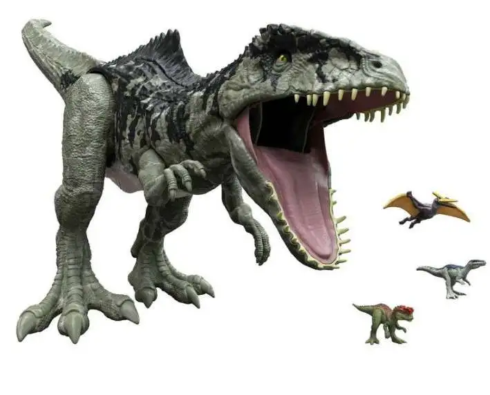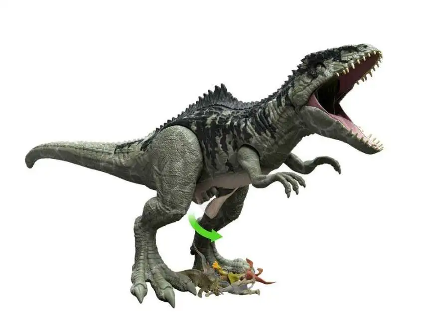 Get ready for thrilling action and adventure with this Super Colossal Giganotosaurus figure based on the dinosaur species introduced in Jurassic World Dominion! At about 14 inches high and more than 3 feet long, the Giganotosaurus has a cool marbleized finish, realistic skin texture and color, posable arms and legs and extra-wide jaws that can open and close. And what can it do with those extra wide jaws? SWALLOW UP TO 20 MINI DINOSAURS WHOLE! (Mini figures sold separately and subject to availability.) To release the minis and start the carnivorous activities all over again, just unlatch the belly door and dump them out. Makes a great gift for ages 4 years old and up especially fans of Jurassic World, dinosaurs and action play. Colors and decorations may vary. For ages 4 and up.