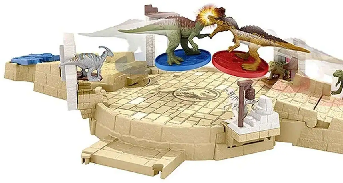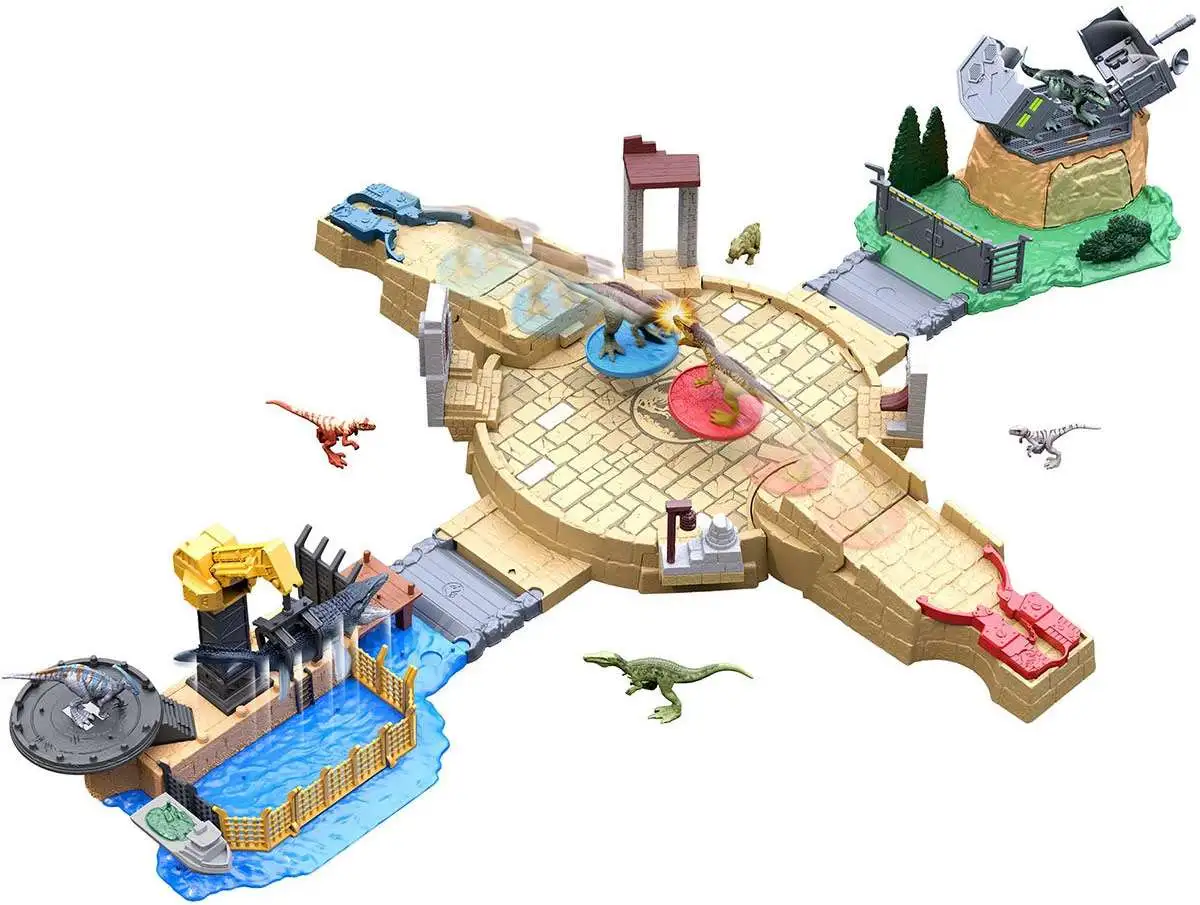 Get ready for thrilling action and adventure with Jurassic World Dominion! Mini Battle Arena is a playset and a game all in one. It comes with 6 dinosaur mini figures and 2 disc launchers and a multi-stage playing mechanism to declare a clear winner. Players use the launchers to shoot the dinos at targets and at each other! Connects to other Jurassic World mini playsets.