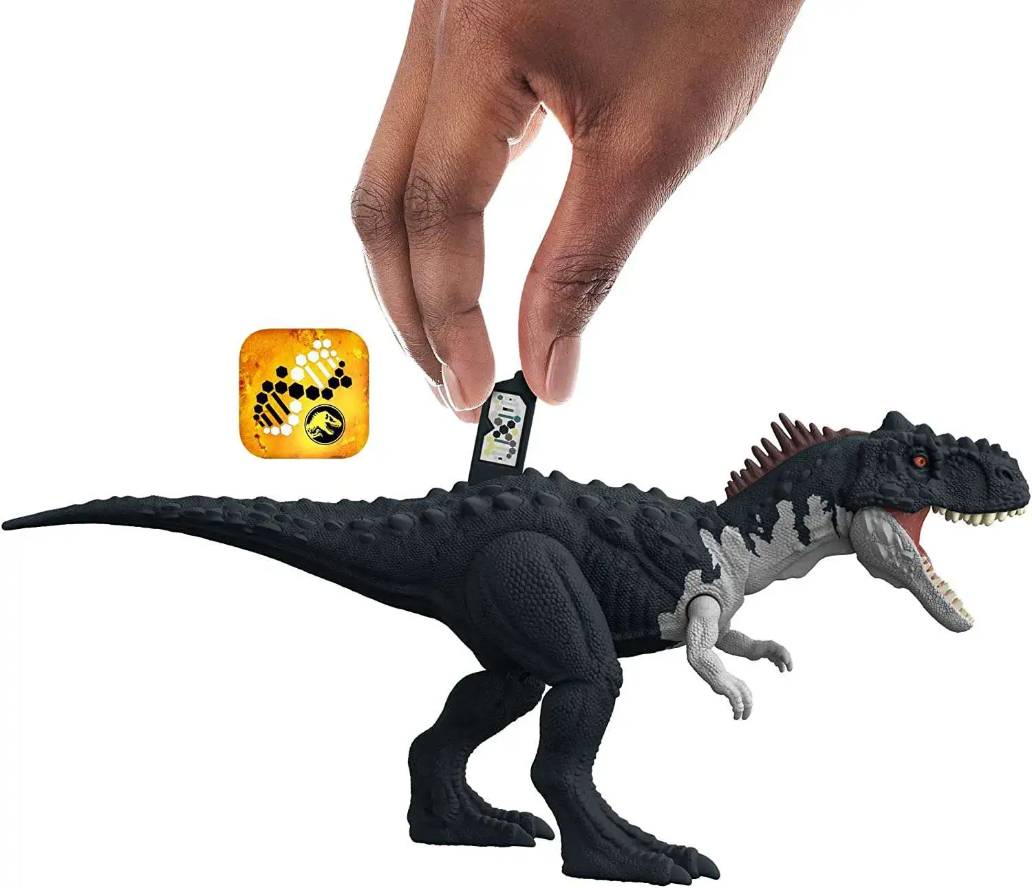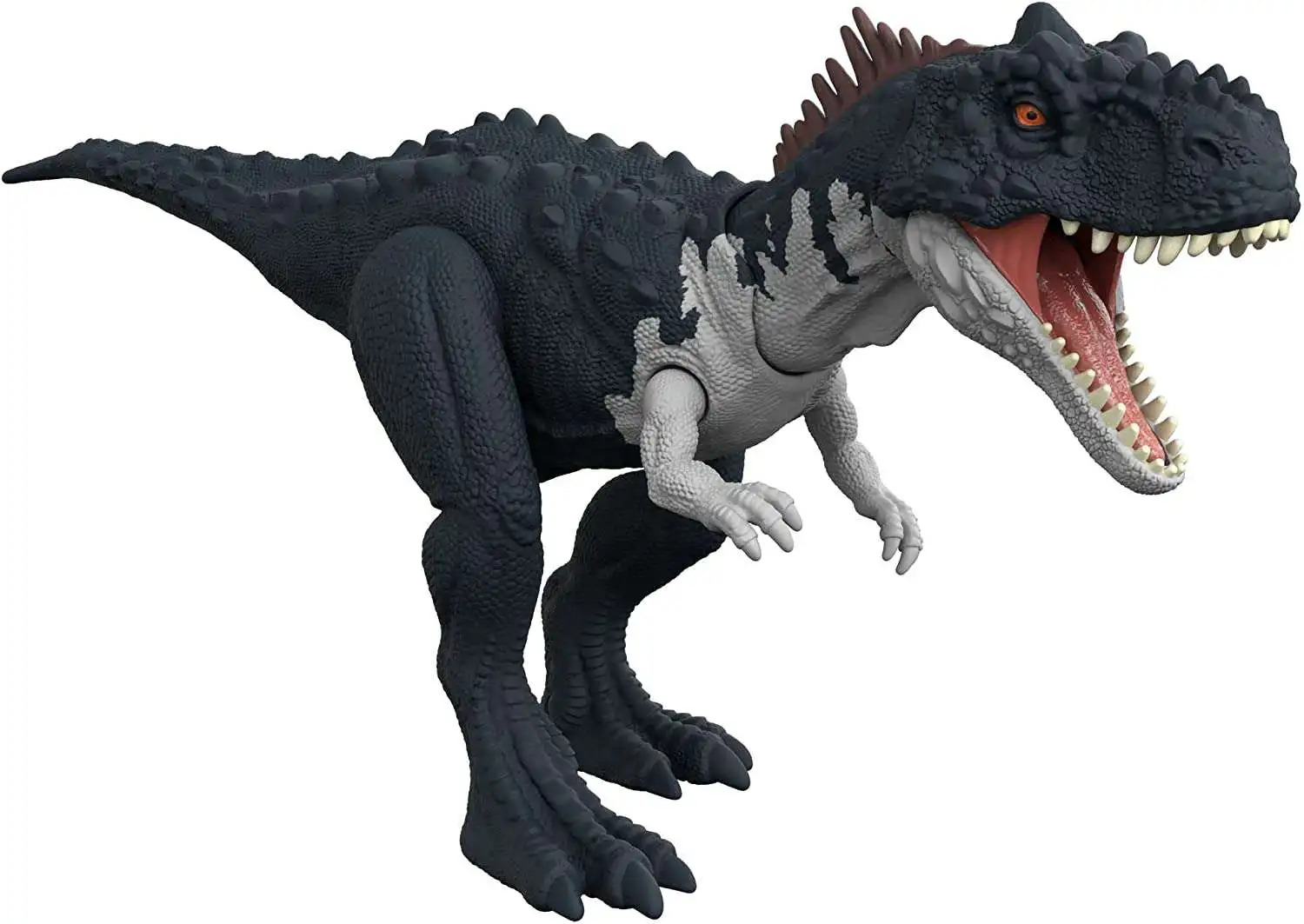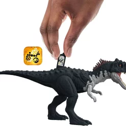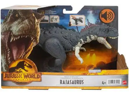 Get ready for thrills and adventure with this dinosaur inspired by Jurassic World: Dominion. This Roar Strikers medium sized dinosaur is a carnivorous Rajasaurus.