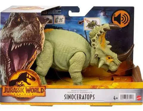 Get ready for thrills and adventure with this dinosaur inspired by Jurassic World: Dominion. This Roar Strikers medium sized dinosaur is a carnivorous Sinoceratops.