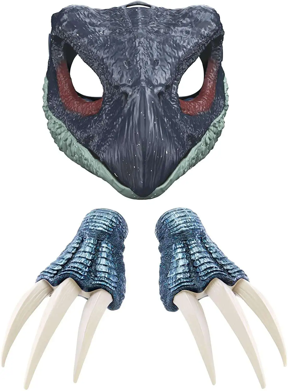 Get ready for thrilling action and adventure with Jurassic World Dominion! Role play gets real and FEROCIOUS with this kit based on a key dinosaur species from the movie, the Therizinosaurus. Realistic claws are ready for battle, and the mask has special jaw-activated ROAR! Made of soft material, the claws are perfect for swiping and slashing when recreating big action scenes and moments. More than 10 inch long, the claws come with an elastic band inside, so they fit snugly on a child’s hand for movie-inspired role-play fun! The mask is about 7.6 in wide and 8.7 in tall and has eye and nose openings for visibility.