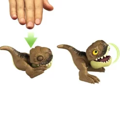 These creatures feature stylized designs of dinosaurs from throughout the Jurassic World franchise. They have multiple poses, starting with a sleepy look. One press on the head, and the dino springs into action, ready to attack with mouth open. Another tap on the head and the dinosaur figure goes back to it back to its tame, sleepy look. Press again for the upright position, balanced on the back tail, like a baby bird ready for feeding. These pet-like toys make great gifts for ages 4 and up.