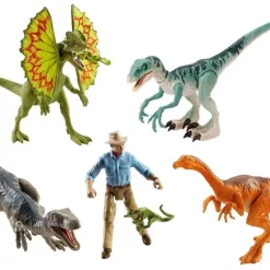The Jurassic World Legacy Collection roars into action celebrating classic moments, themes and characters from the blockbuster film franchise! Play out all the exciting action with this set featuring an iconic character and dinosaurs from the first Jurassic Park film. This 6pk includes the Alan Grant figure in 3 ” action scale with 10 points of articulation, a uniquely posed attaching Compy dinosaur and an accessory unique to Grant’s character. More movie adventure fun includes a leaping Velociraptor (pull back activation on the legs makes it leap forward when released) and three dynamically posed Attack Pack dinosaurs: Velociraptor, Gallimimus and Dilophosaurus. Each Attack Pack dinosaur includes five points of articulation, realistic sculpting and authentic decoration. Get ready for classic movie moments to come to life and play out all the exiting action with this 6pk ! Colors and decorations may varybuy = ‘Y’;