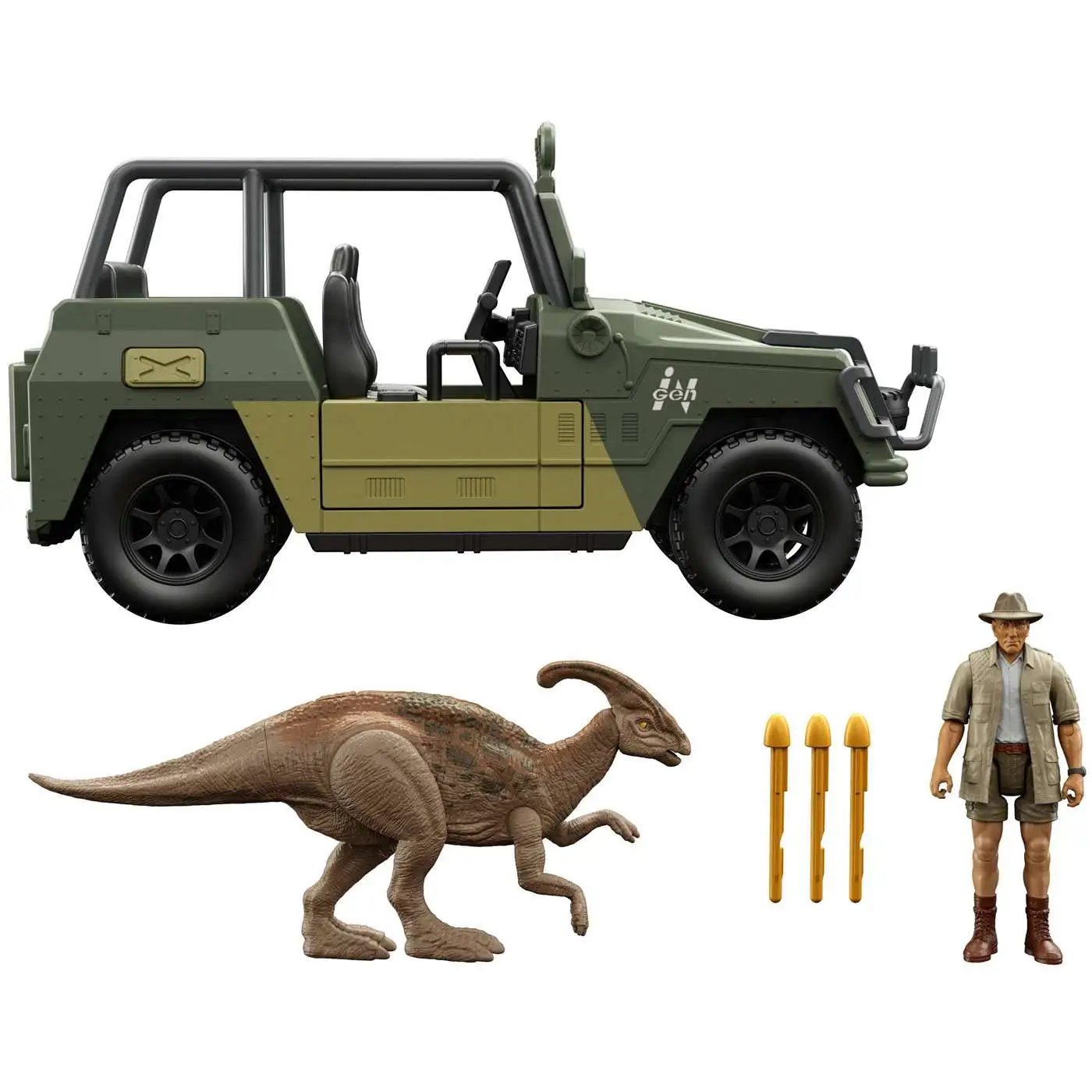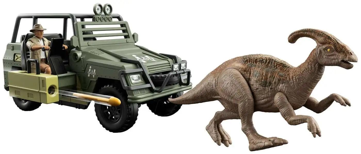 The storytelling can begin right out of the box, with Roland Tembo action figure, Parasaurolophus dinosaur action figure and a tricked out off-road vehicle with projectiles!