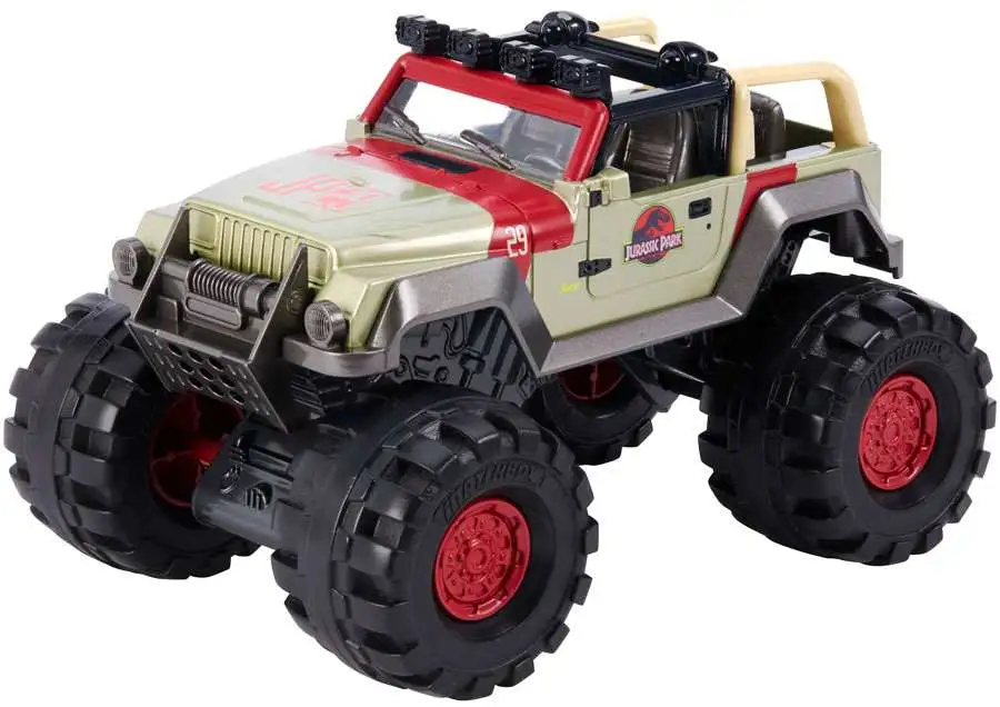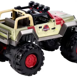 These realistic large, die-cast vehicles with Jurassic World movie-inspired bodies in 1:24 scale, have oversized wheels and accurate details. Each of the big-wheeled off-road trucks uses a standard chassis for adventure and push-around exploration. Each one is a detailed replica of staff vehicles used by park staff in the movies with authentic deco and original features.