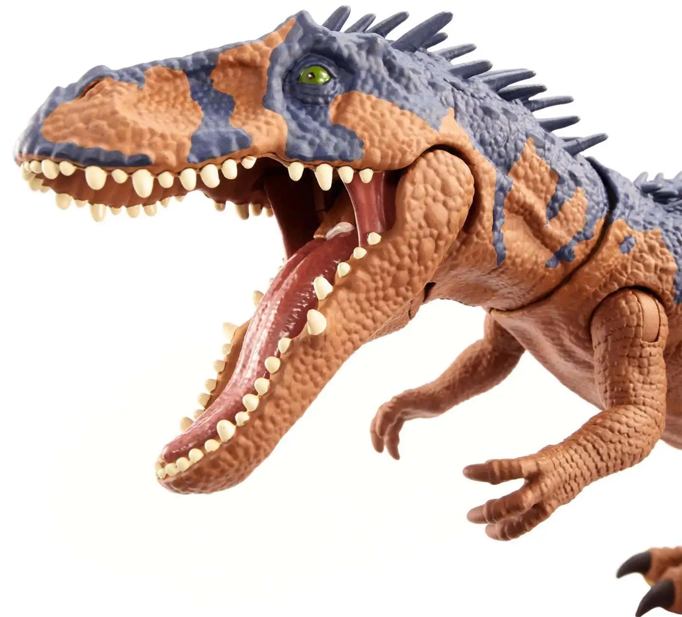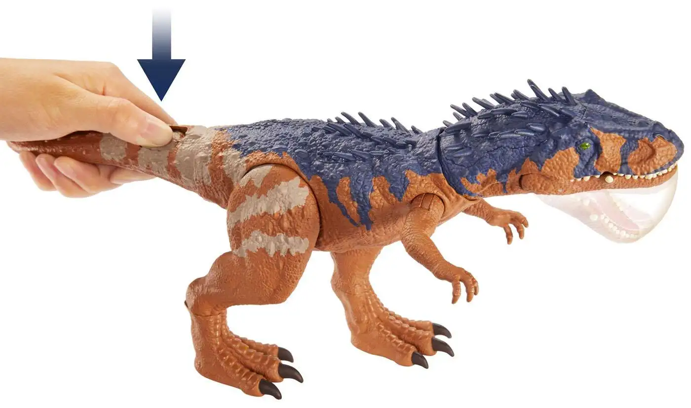 Be a part of the Jurassic World adventure with the ultimate in dinosaur battle action! This larger-sized Jurassic World Massive Biters dinosaur action figure features the brand new “Primal Attack” feature, enabling kids control the battle play by activating these awesome battle moves: move the tail from side to side to activate head movement; move the tail up and around for body twisting movement and move the tail for awesome chomping action (activate all moves at the same time for total animated control of the figure). You can also push the button on the tail area to make the jaws chomp, too, for extra-added battle play! This Massive Biters dinosaur action figure also features movie-inspired sculpting, movable joints, authentic color and realistic texture. Collect all the Massive Biters dinosaur action figures and recreate epic Jurassic World battle action scenes or make up your own adventures! For more dinosaur fun, download the Jurassic World Facts app (Android and iOS) to scan and watch your dinosaur come to life, zoom in on dinosaurs up close, hear dinosaur roars, learn fun dinosaur facts and more! Each sold separately, subject to availability. Colors and decorations may vary. For ages 4 and up.