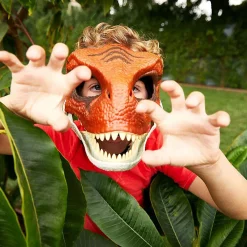 Get ready for thrilling action and adventure with Jurassic World! These iconic masksTyrannosaurus Rex (green) and Velociraptor (beige and orange) are inspired by the movie and feature realistic details like skin texture, color and teeth so kids can become their favorite dinosaurs! The opening jaw feature allows chomping motion for even more realistic action. A secure strap ensures a comfortable fit as well as eye and nose openings for visibility. Choose from the Tyrannosaurus Rex (green) or Velociraptor (beige and orange) masks and others to become your favorite Jurassic World dinosaur!