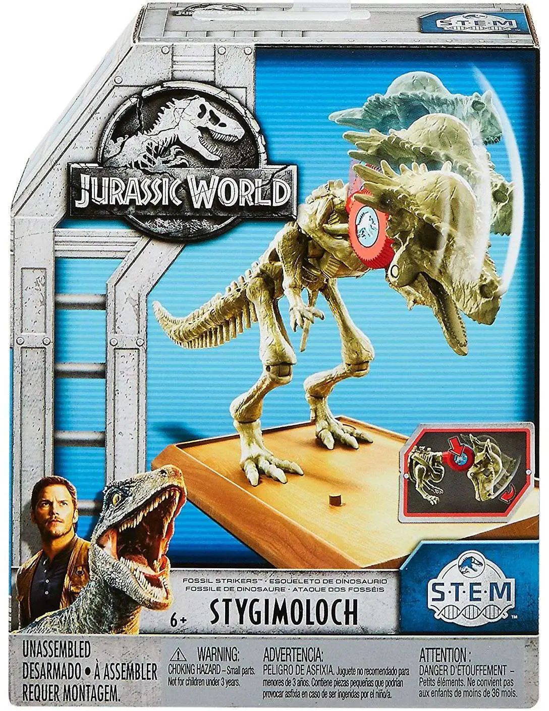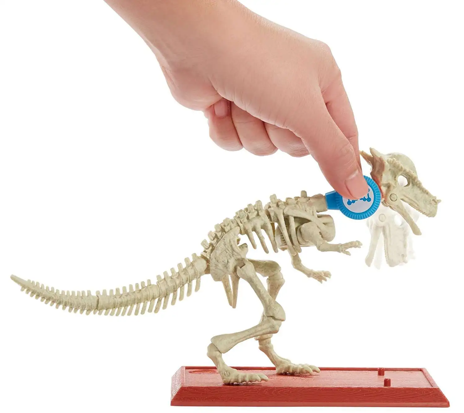 Now kids can play paleontologist with the Jurassic World Fossil Strikers Assortment. This assortment contains four different dinosaurs and their fossilized bones with instructions on how to build the complete dinosaur. Choose from a Velociraptor, Stygimoloch, Triceratops and Pteranodon. Once each dinosaur is assembled, fans can place them in their standee next to the accompanying placard that contains facts and information about the dinosaur. It’s like having your very own Jurassic World Natural History museum! Each dinosaur also comes with a DNA “activation” key that triggers a strike movement iconic to that species and brings them to life: the Velociraptor chomps, the Stygimoloch and the Pteranodon head butt, and the Pteranodon has a wing flapping feature. Each set includes fossilized dinosaur bones, DNA activation key, standee and placard.