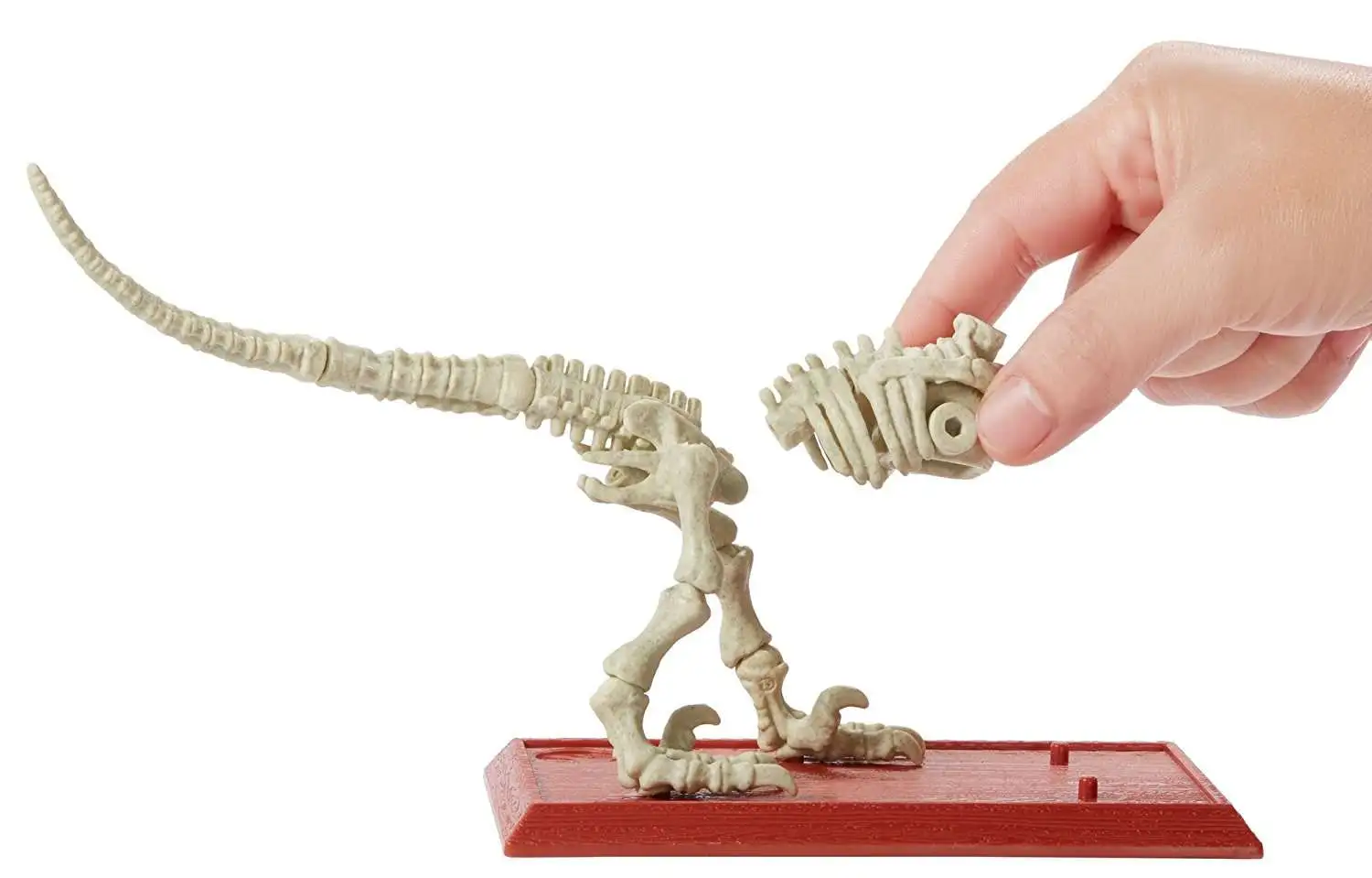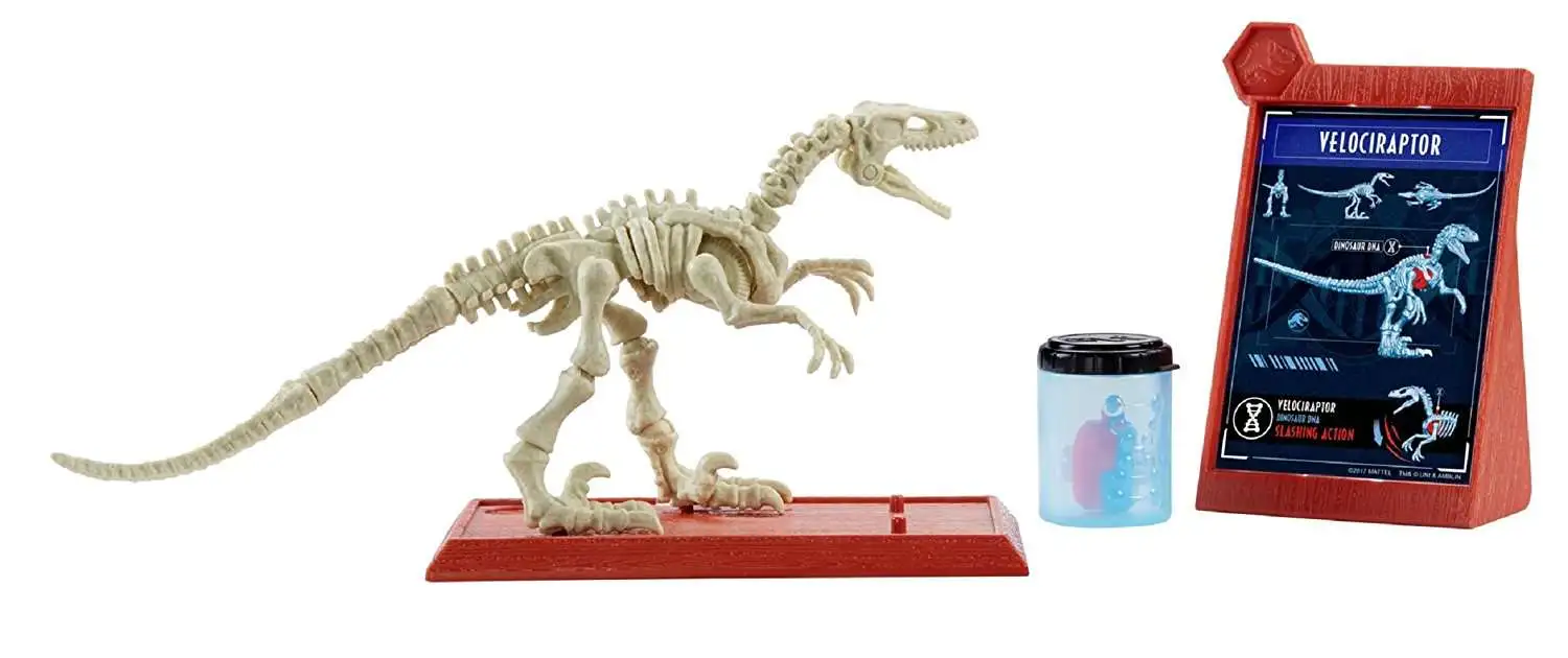 Now kids can play paleontologist with the Jurassic World Fossil Strikers Assortment. This assortment contains four different dinosaurs and their fossilized bones with instructions on how to build the complete dinosaur. Choose from a Velociraptor, Stygimoloch, Triceratops and Pteranodon. Once each dinosaur is assembled, fans can place them in their standee next to the accompanying placard that contains facts and information about the dinosaur. It’s like having your very own Jurassic World Natural History museum! Each dinosaur also comes with a DNA “activation” key that triggers a strike movement iconic to that species and brings them to life: the Velociraptor chomps, the Stygimoloch and the Pteranodon head butt, and the Pteranodon has a wing flapping feature. Each set includes fossilized dinosaur bones, DNA activation key, standee and placard.