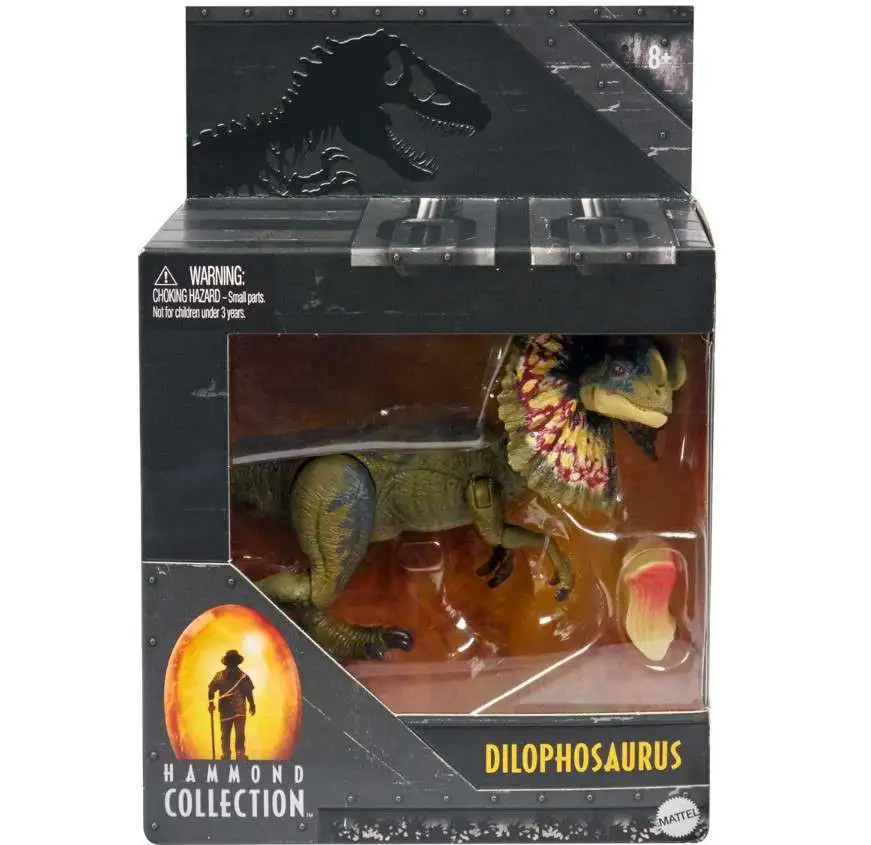 Named for the innovative founder of Jurassic Park, the Hammond Collection celebrates the thrills and adventure of the entire Jurassic World franchise and sets a new quality standard for dinosaur collectables! Discover this action figure of the Dilophosaurus from the original Jurassic Park movie. The premium finishes and movie-quality design accurately capture this unique carnivore. Collectors of all ages will love this figure, built at 3 3/4-inch scale with incredibly detailed decoration and texture and 14 articulated joints. Even the packaging is beautifully designed with deluxe finishes. Highly posable from head to tail, Dilophosaurus is ready to star in a spectacular display where she will really come to life. This figure makes a great gift for Jurassic World fans and collectors ages 8 years and older.