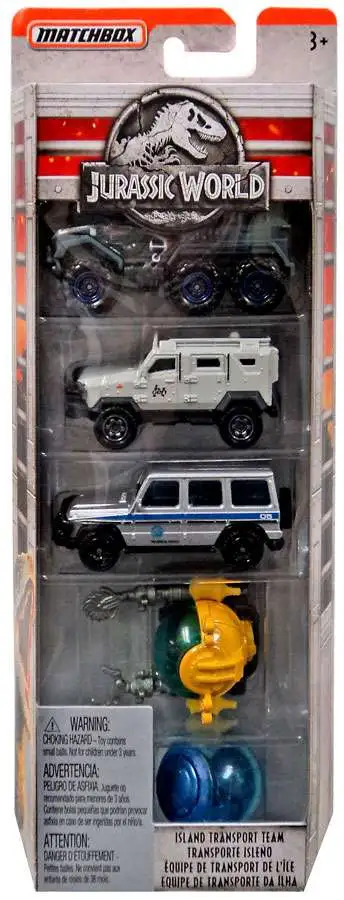 Get ready for thrilling action and adventure with Jurassic World! Matchbox and Jurassic World join forces to create an awesome 5-pack assortment of 1:64 scale vehicles! Each 5-pack includes castings from every movie in the Jurassic World franchise. There is one exclusive vehicle deco in each 5-pack! Featuring legacy vehicles and new castings for a variety of realistic and highly detailed replicas of cars and trucks from five different movies to collect and enjoy. Collect all the Jurassic World mini action figure dinosaurs (sold separately) for the ultimate movie action play! Features: Matchbox inspires kids to be heroes with real world out-of-this-world vehicles equipped to get the job done. This amazing 5-pack assortment of 1:64 scale vehicles is inspired by the Jurassic World franchise and is sure to become highly collectible. Each 5-pack of new castings includes legacy vehicles, one exclusive deco, and new releases from the five films.